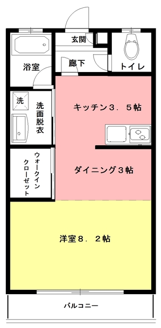 | 間取 | 1DK (洋室8.2帖、D3帖、K3.5帖) | ||