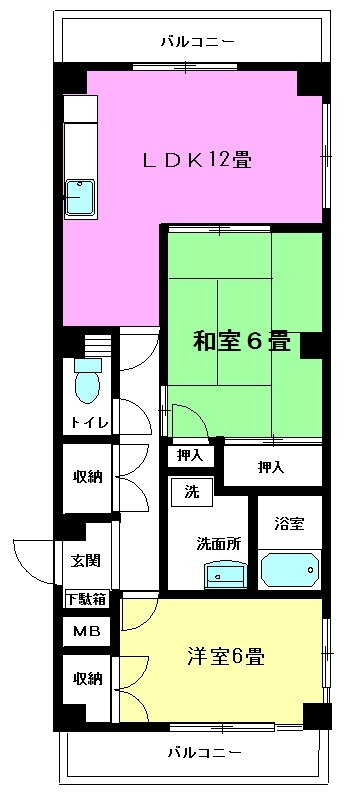 | 間取 | 2LDK (洋室6帖、和室6帖、LDK12帖) | ||